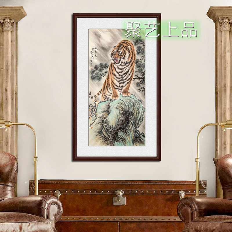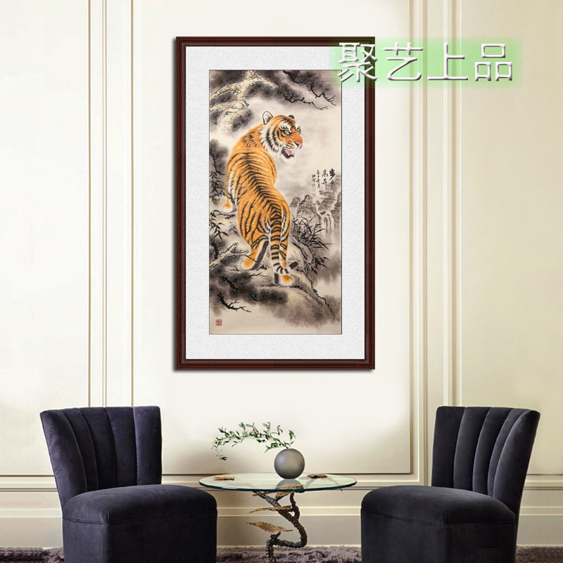无论是家里或是办公室,挂老虎图是一种吉祥好运的象征。上山虎一般都是昂首挺胸的姿势,配着松树枝、雪景,宁静致远的感觉给人一种步步登高之感,在家中挂幅上山虎寓意着事业上步步高升,事事如意,招财纳福。
