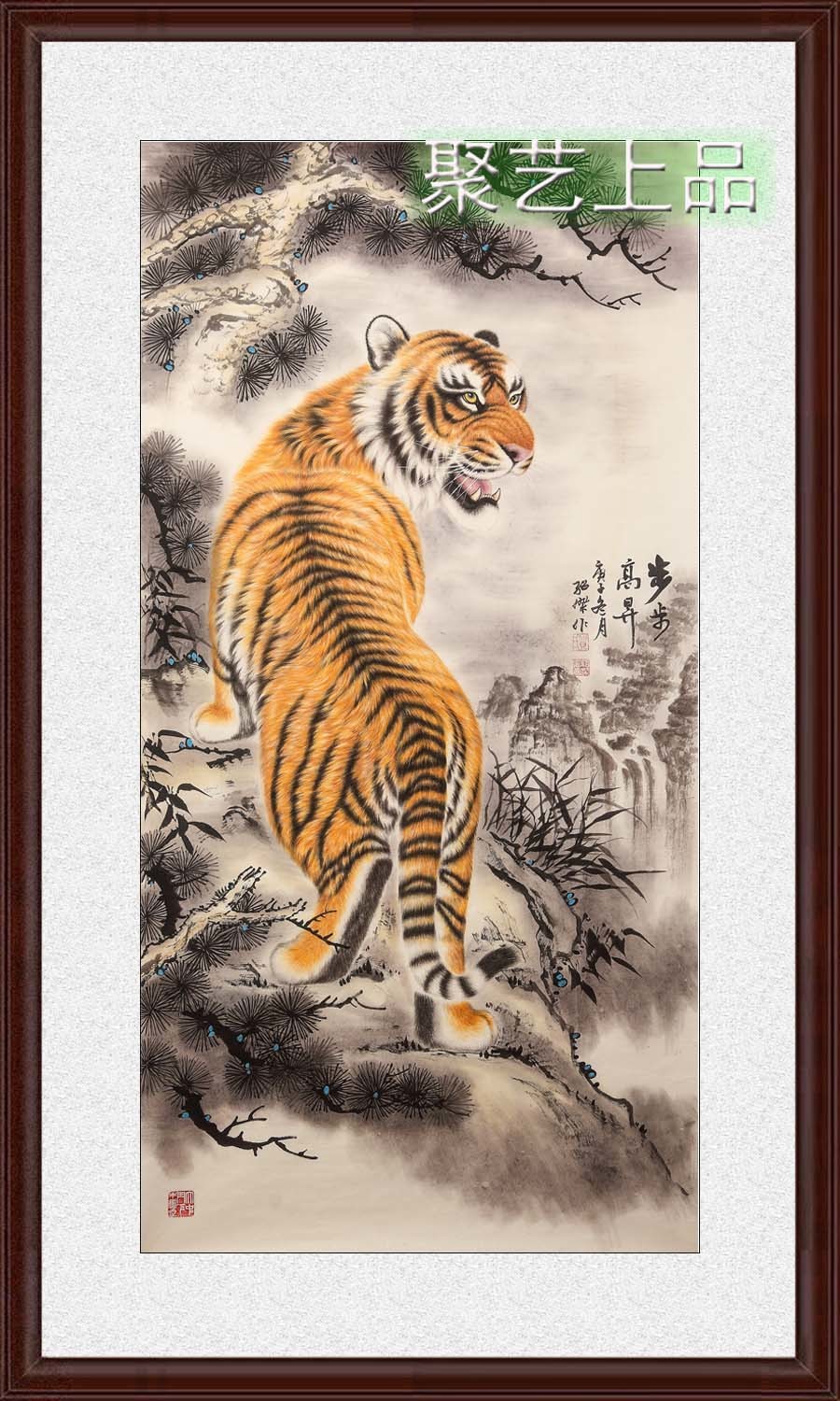 画虎名家贺绍杰老虎画《步步高升》作品来源:聚艺上品