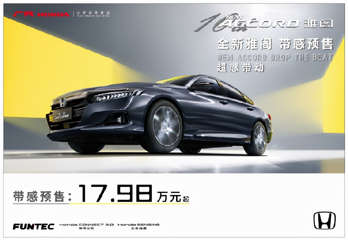 10月1日,新款广汽本田雅阁公布了预售价:17.98万元起,并已开始接受预定。同时官方表示,这款新车将会在10月9日晚上正式上市。