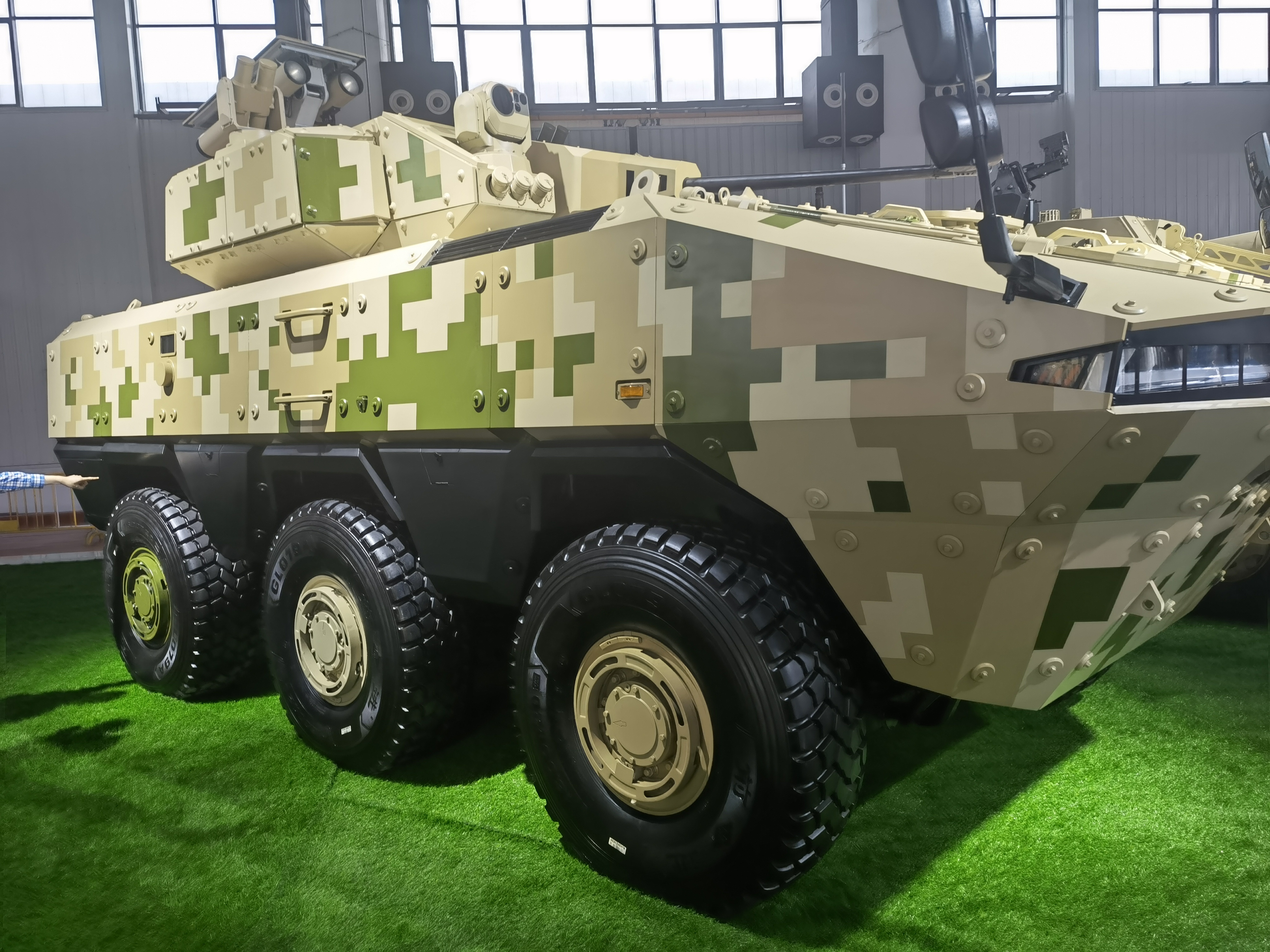除了反坦克导弹以外,今年兵器工业的重头戏还是多种全新平台。今年中国兵器工业集团首次展示了VN-22 6x6轮式装甲车。作为一款全新平台,该型装甲车在防护、机动、火力系统上均采用了大量新技术,是中国兵器工业集团陆战装备先进技术的代表作。