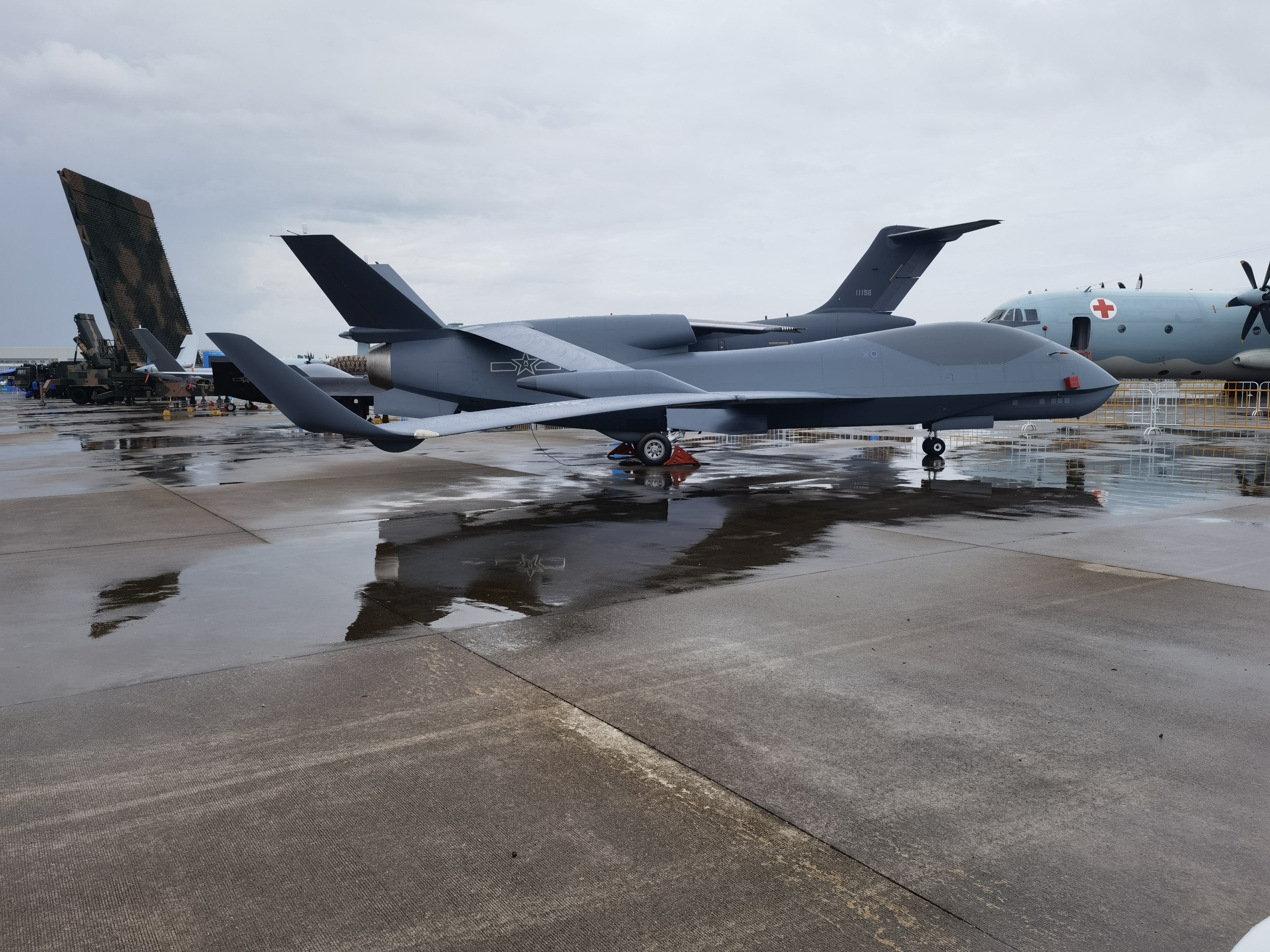 彩虹无人机系列的新成员,以大型、高空、高速为特点的彩虹-6无人机首次亮相航展。多款不同单位研制的无人机产品也陆续登场。