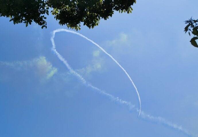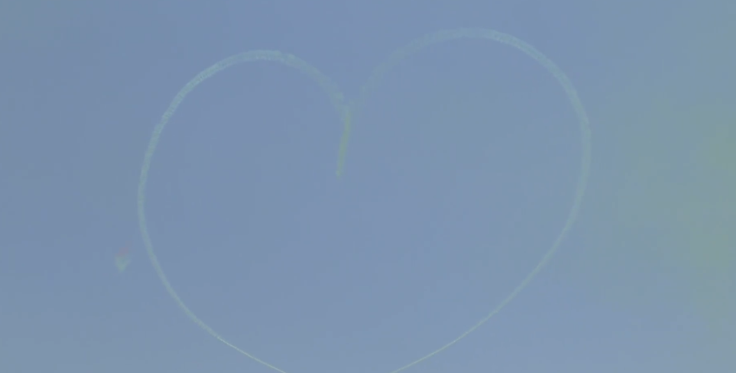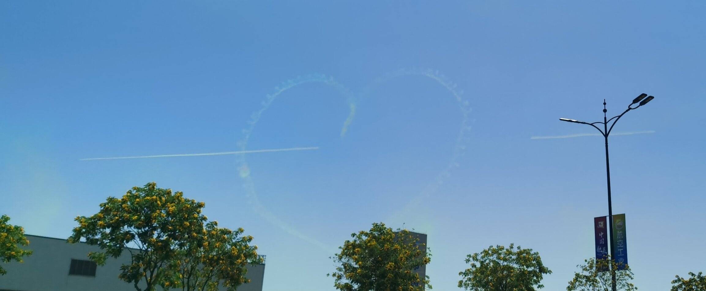 10月2日是中国航展公众开放日第二天,在珠海航展现场,中国空军航空大学红鹰飞行表演队两架飞机在空中画出一颗心形,另有一架飞机从中穿过,完成“一箭穿心”,现场观众沸腾。