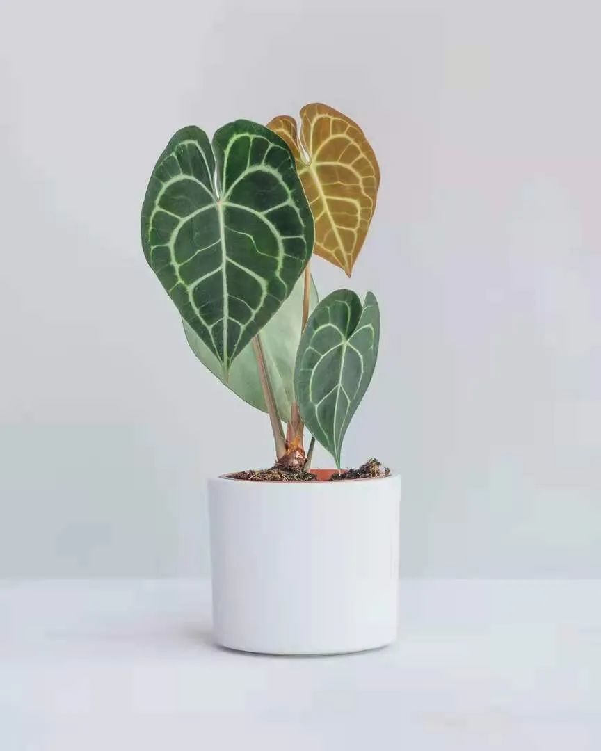 银剑蔓绿绒的叶脉是凹陷的,叶片非常有光泽,看起来就有一种高贵的感觉,这也是很常见的一种网红植物,价格并不是太便宜,但也不会太贵,它比较适合搭配一些朴素的陶盆,最好是给它搭配一个银灰色或浅色的陶盆,养在室内就可以正常生长,注意维持湿度,土壤尽量透气,避免土壤持续潮湿或积水。