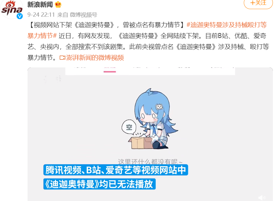 后来,事件在发酵两天之后,《迪迦奥特曼》终于又恢复上架。但不少网友称,恢复上架后的版本存在部分内容的删减。