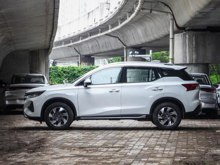车侧呈现出青春的设计风格,细节处一些个性化元素的加入,很容易吸引年轻消费者的关注。该车配备的为佳通轮胎,前后轮胎规格均为225/60 R17,采用了多辐旋风式灰银双色轮圈设计。
