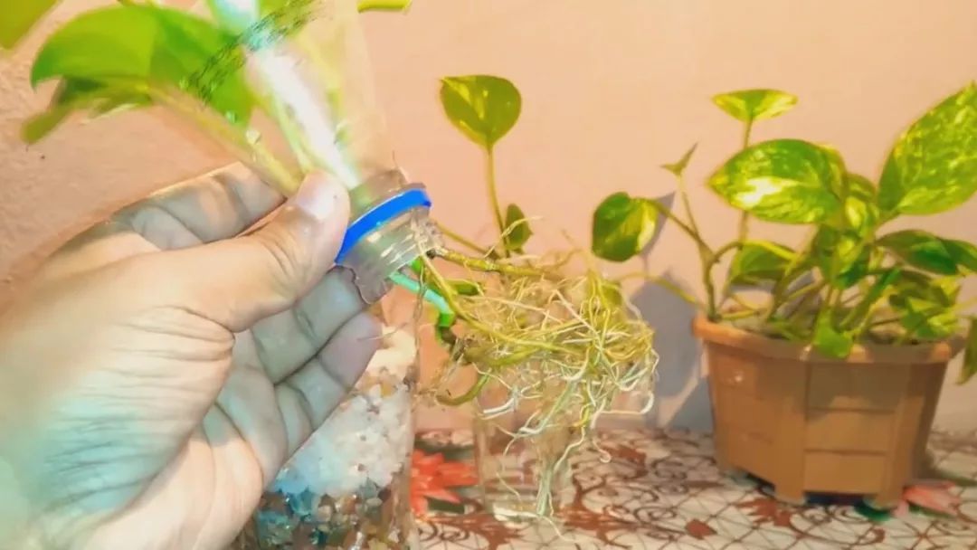 这样就能保证水培扦插的绿萝枝条根系长得更旺盛,加入水培溶液之后,绿萝的叶子会更有光泽,根系也长得更加旺盛了。