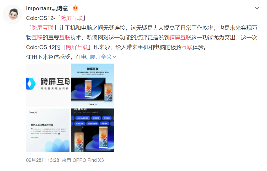 除了流畅性体验之外,很多人也对新增的跨屏互联功能表示好评,我们只要用一台Win10系统的电脑,就能够实现与搭载ColorOS 12系统的手机进行连接,在完成连接之后,就可以在两个平台之间随意拖拽文件,十分方便,与此同时,ColorOS 12系统里面还有Car+车联、自由浮窗和智能侧边栏2.0等十多个功能卖点,可以大大增加我们的办公效率。