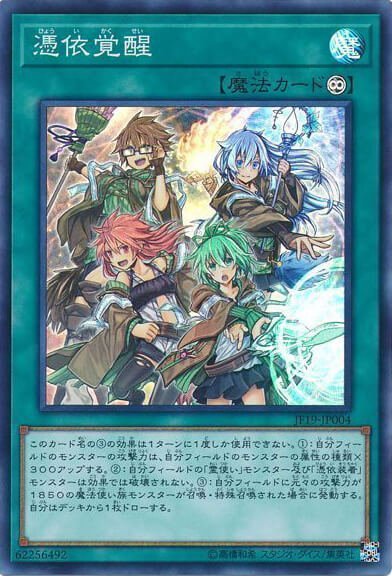 这个卡名的③的效果1回合只能使用1次。①自己场上的怪兽的攻击力上升自己场上的怪兽的属性种类×300。②自己场上的灵使怪兽以及凭依装着怪兽不会被效果破坏。③自己场上有原本攻击力是1850的魔法师族怪兽召唤·特殊召唤的场合发动。自己从卡组抽1张。