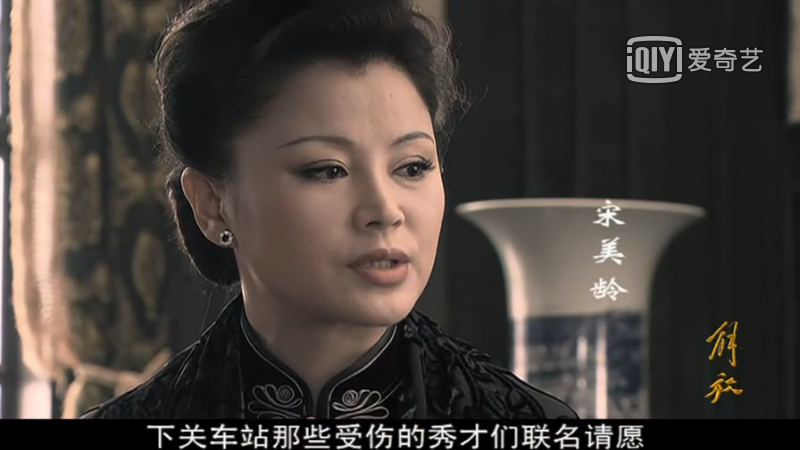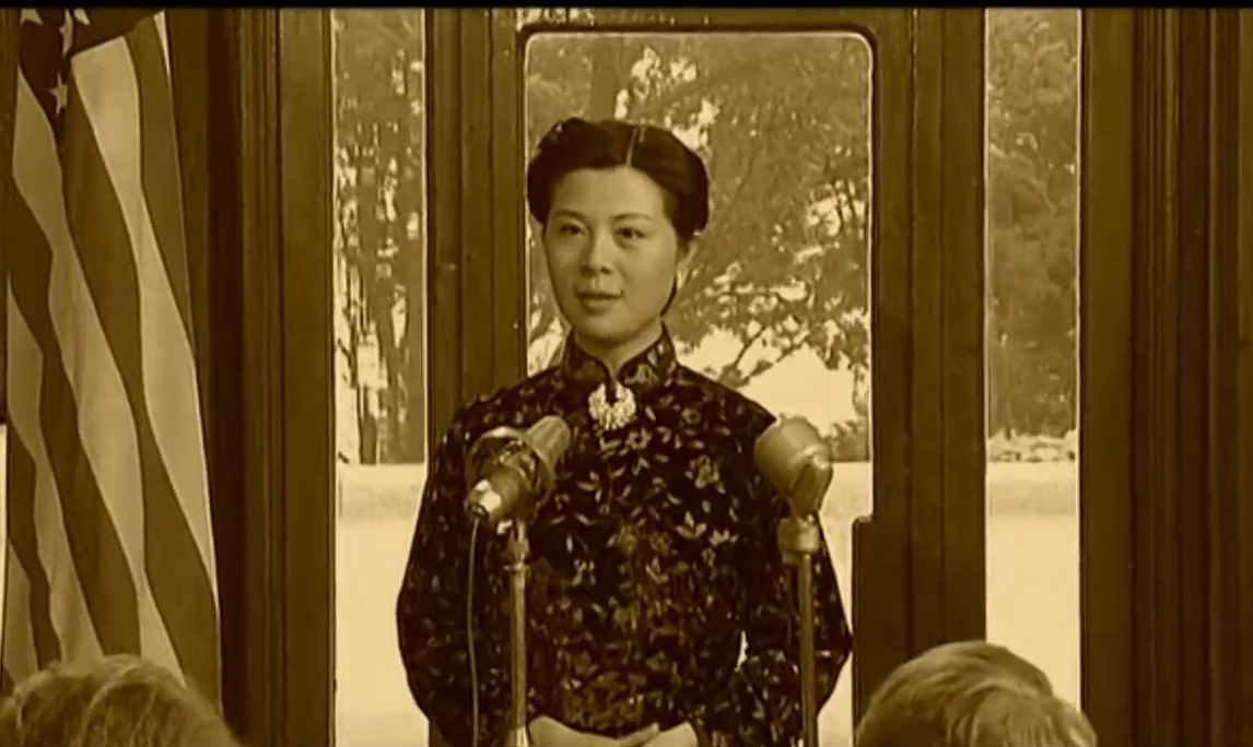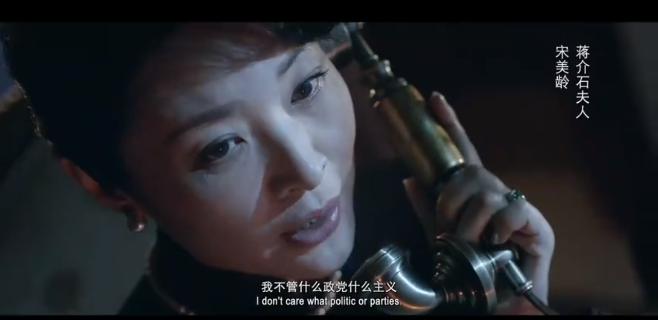 演员看上去还是太年轻了。剧中,表现她在美国游说援助,与蒋介石通话时出现角色形象。