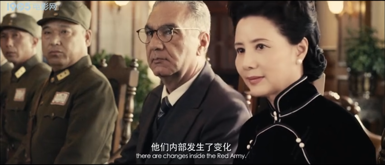 片中出现不多,主要是警告蒋介石不要对其姐姐做出非常的暗杀行动,突出了人物身上的人性之美。