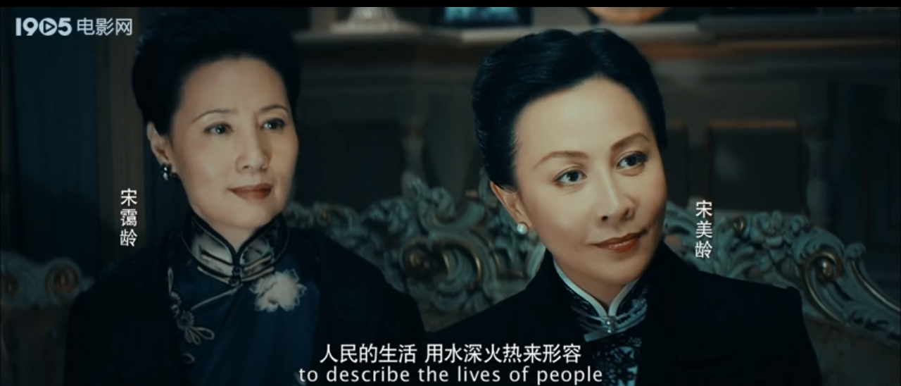 在后一剧中,蒋介石欲对前往北平的宋庆龄下毒手,美龄发现后,话中带讽,令蒋介石不敢行动,体现了宋美龄顾及人性与亲情的一面。