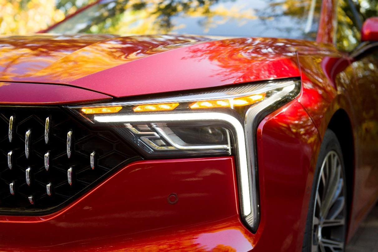 性感曲面的第二大特点是交融,比如前大灯与“数码雨滴”中网打破了分界,灯即是格栅,格栅也是灯,而且大灯的灵感源于中国古代兵器“戈”,中华文化意味浓厚。有人说其大灯和凯迪拉克的相似,小编说一句,这种话等啥时候美国地底下也挖出来“戈”这种青铜兵器再说吧。