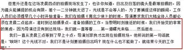 然后就是不认可刘家良的拍摄手法,比如有一场日出的戏,内地演员凌晨两点起床,然后导演直到10点钟才出现,最后也因为光线不行没有拍摄。