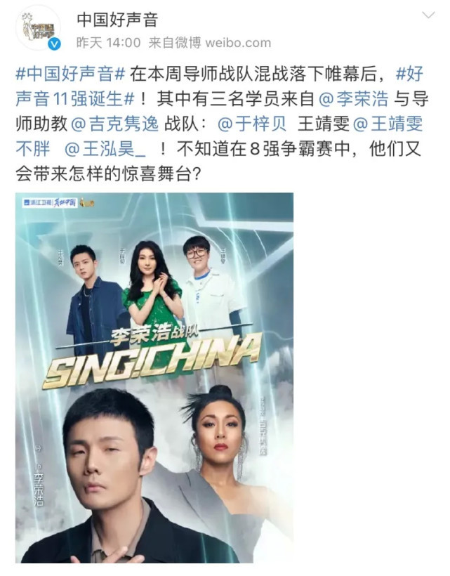 纵观《中国好声音》播出九年,当初名噪一时的冠军未必能够在娱乐圈里闯出什么名堂。反倒是吴莫愁、吉克隽逸、周深等非冠军选手勇闯娱乐圈,凭借自己不俗的实力获得大众的肯定。冠军只是一时的,我们都应该放平心态啊~