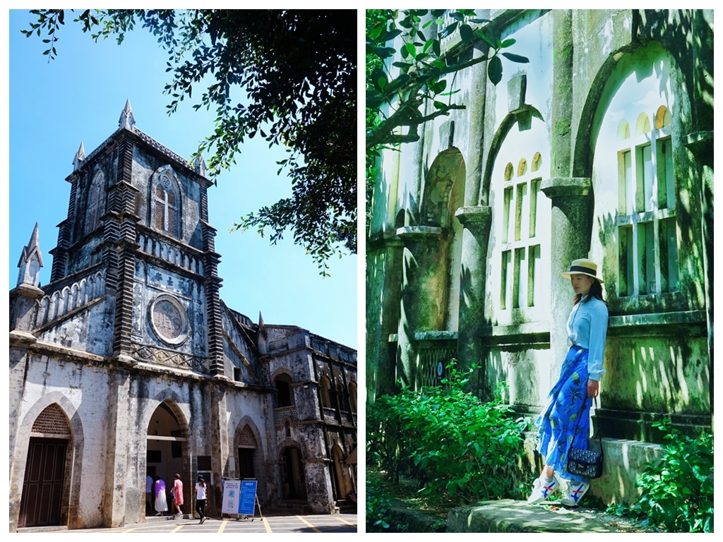 除了自然风光,涠洲岛的历史同样值得一探。岛上有很多小村落,声名远播的天主教堂位于盛塘村,法国巴黎外方传教会传教士耗时10年建成,采用岛上特有的珊瑚石。岛上民居多低矮,这座教堂便显得格外有存在感,哥特式建筑往往带着股欲与天公试比高的尖利和不管不顾的嚣张,但涠洲岛的这一座却要柔和得多,大约是参考了在地的文化心理和大众审美吧?