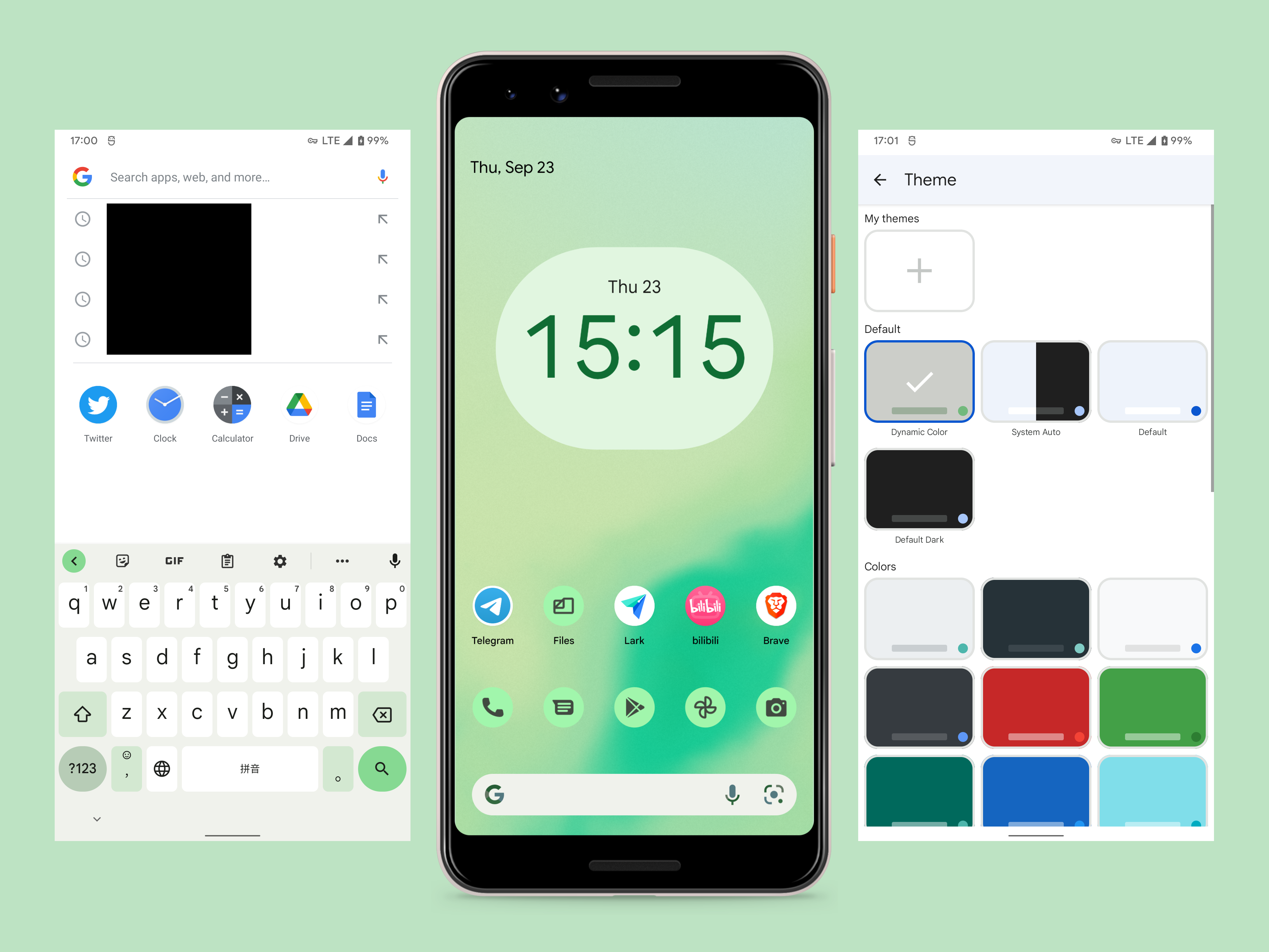 在 Android 12 中,Gboard 提供了新的动态颜色主题方案,开启后键盘背景、按键都会采用从壁纸提取到的颜色进行点缀。