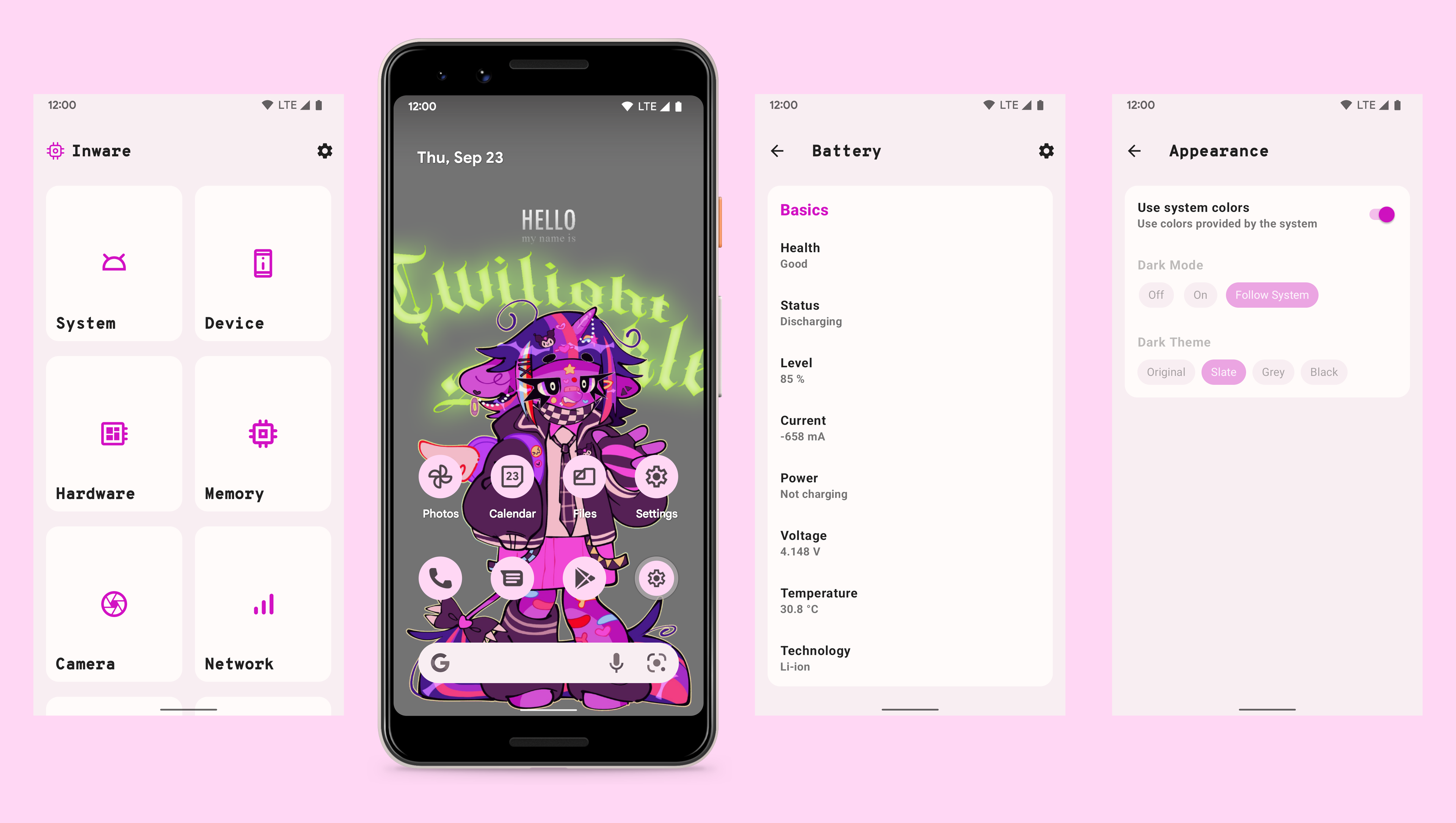 在最新的 Inware 测试版中,进入主界面右上角的软件设置,在外观菜单中便可以找到一个名为 Use system colors 的开关,将它打开之后就可以让 Inware 的配色方案与系统壁纸匹配。