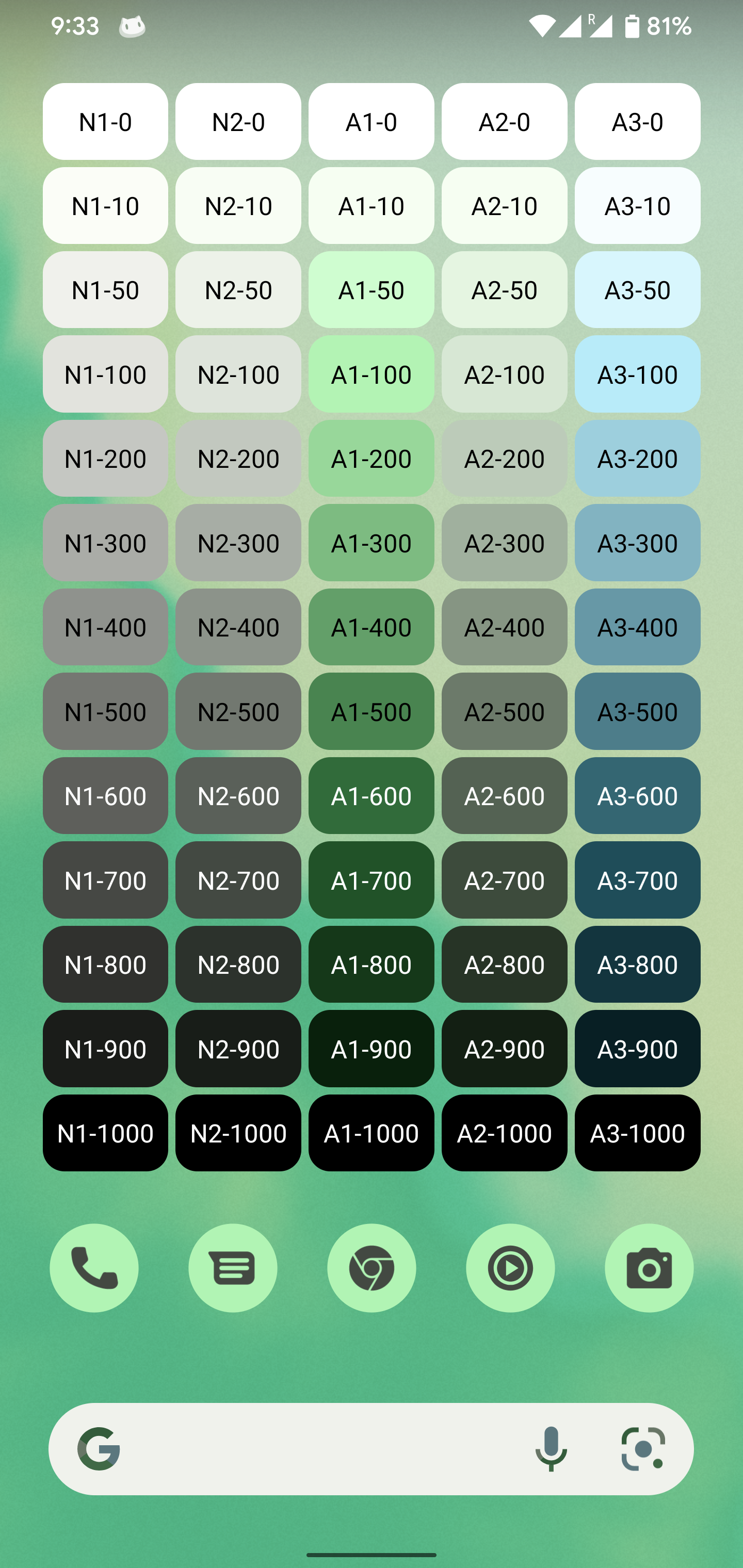 首先是颜色,通过不同的动态颜色取值,计算器不同区域、不同按键之间在保留层次感的同时也有了对系统整体色彩风格的呼应,如果你将 Android 12 动态颜色的彩蛋小部件添加到桌面并完全展开,会发现计算器主界面基本都是提取的 N1、N2 和 A1、A2 相近色列,全部清除(AC)这种需要谨慎操作的按钮则直接取到了 A3 列进行强调。