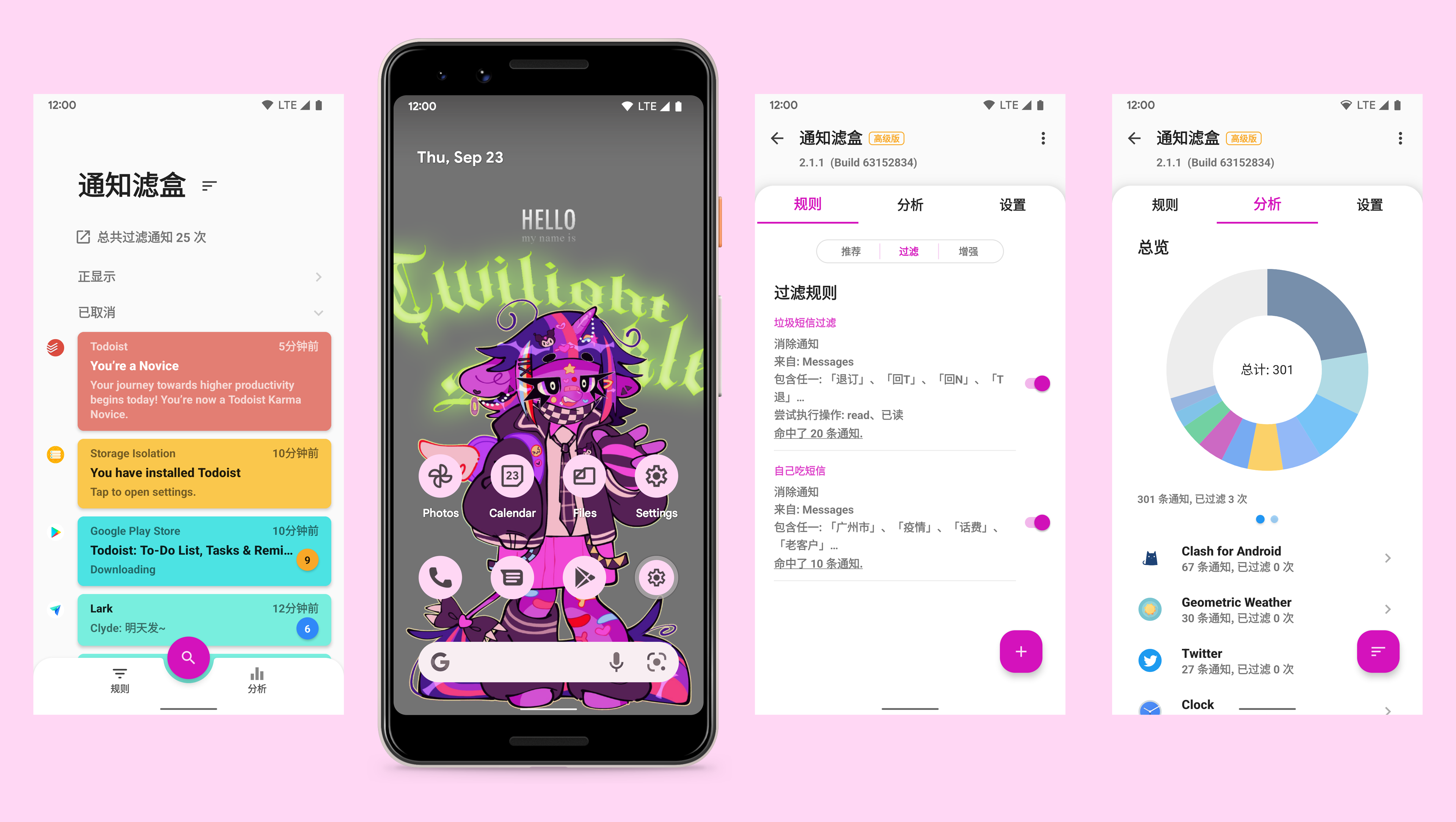 在最近更新的通知滤盒 v2.1.1 中,开发者为其接入了 Material You 动态配色方案,甚至应用右下角的悬浮操作按钮也如 Google 应用一样改成了圆角矩形样式。