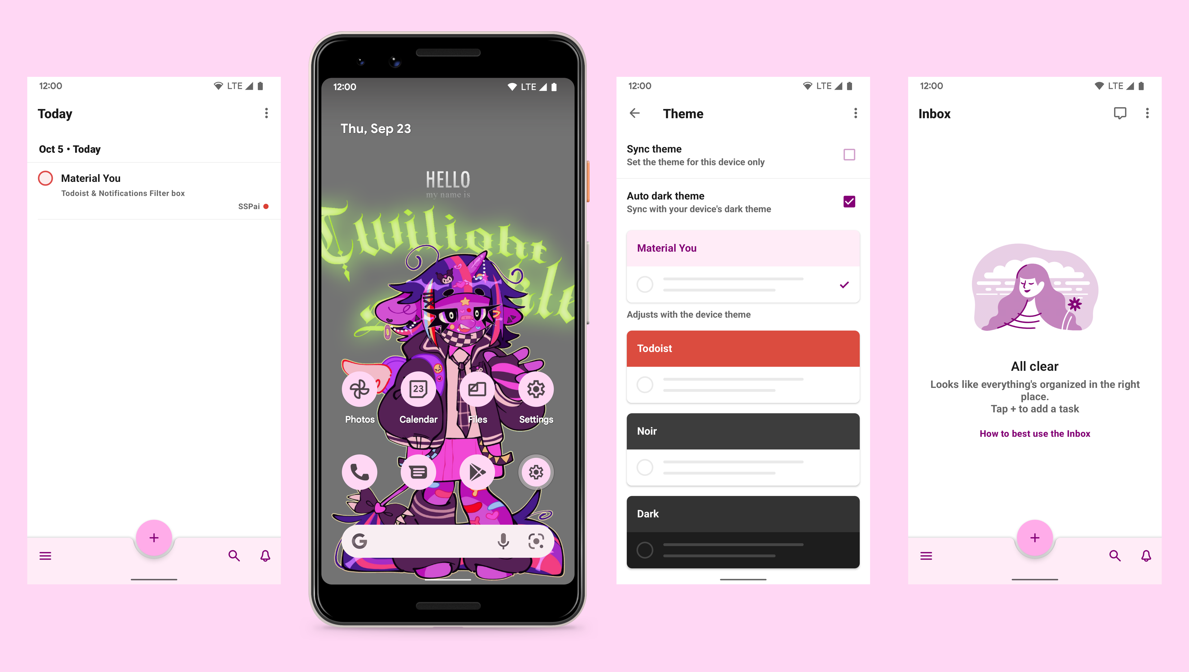 值得肯定的是,Todoist 的动态主题色选项也没有放进订阅解锁区域当中,免费版用户在安装最新测试版本后也能进入设置菜单手动打开;不过目前 Todoist 的动态配色方案还没来得及适配深色主题,也无法跨平台同步到其它设备上。