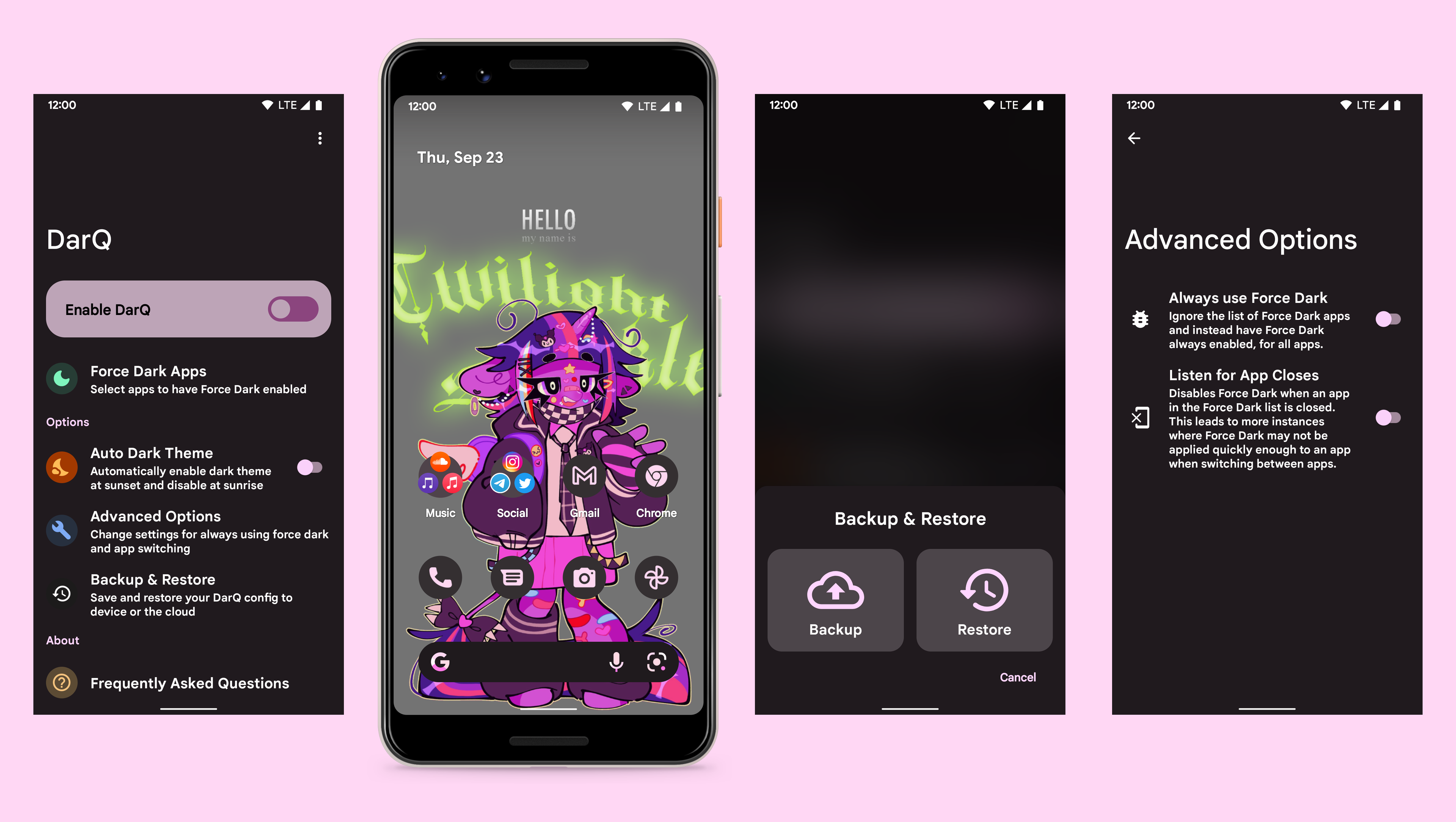DarQ 是一款借助 root 权限、为不支持深色主题的应用(比如 Handshaker )强行开启深色界面的小工具。 在 6 月末的 2.0 版本 中,DarQ 就已经加入了对 Material You 色彩系统的支持,经过 7 月初 2.1 版本的小修小补之后,目前它在 Android 12 上的使用体验已经相当完善。