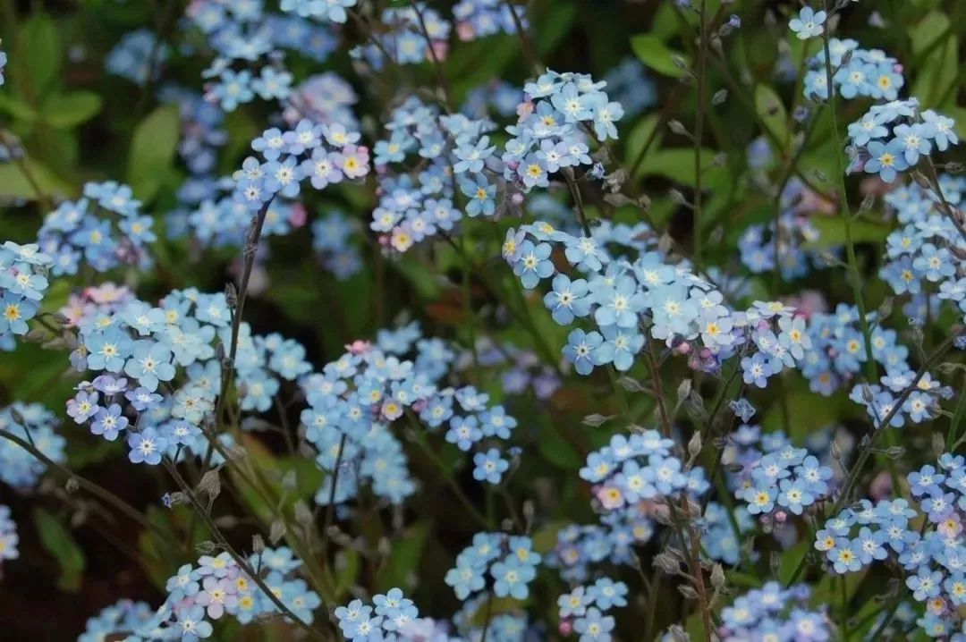 勿忘我在自然界都是生长在树荫下的,现在已经养成了迷人的景观植物,它一般是在早春的时候开花的,花朵是呈蓝色或蓝紫色的,它的花朵特别精致小巧,都是五片花瓣的蓝色花。