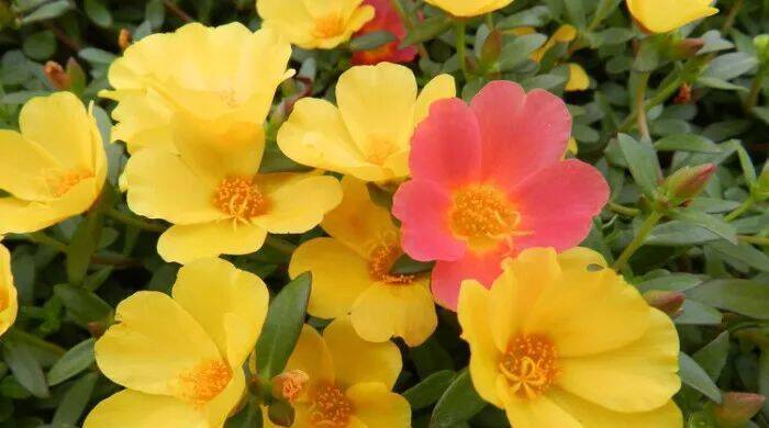 现在大花马齿苋经过园艺学家们的不断培育,已经出现了非常多的品种,花型的越来越大,花色也越加丰富,有常见的红色、黄色、粉色、白色、橘黄色等。