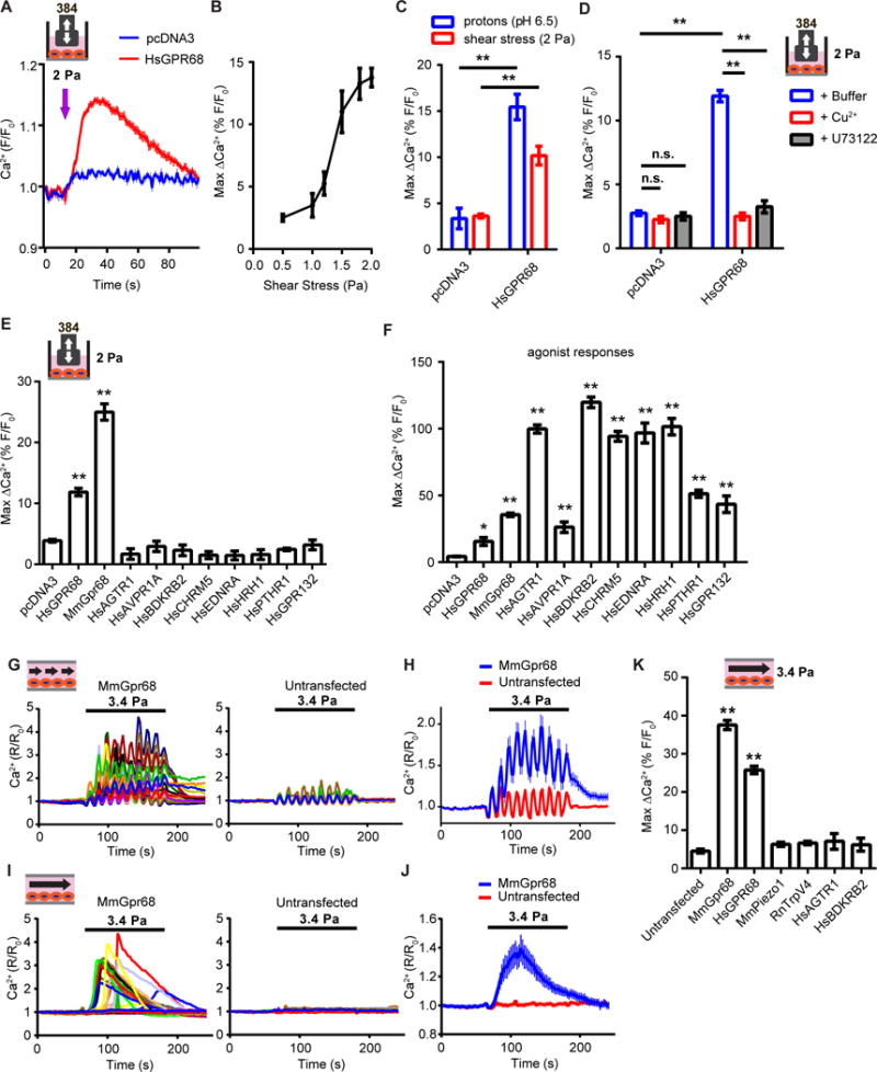 在模拟血液层流测试中,GPR68 也能够对压力刺激产生响应,而其它与层流传感器有关的蛋白质则无响应。