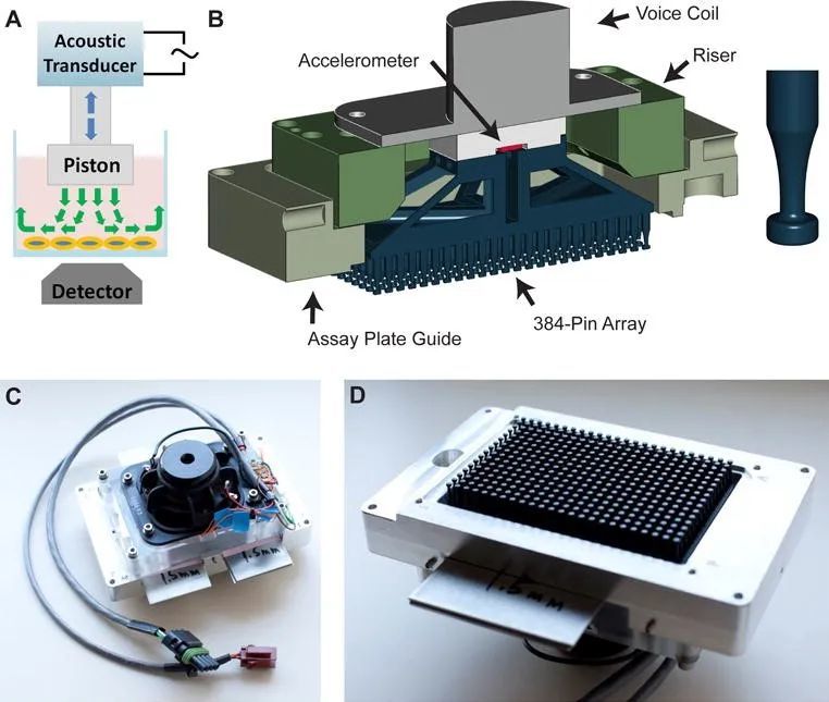为了加速与机械转导相关的基因组筛选,团队重新设计了一种新型的 384 孔高通量 (HT) 机械刺激系统,并使用已经发现的 Piezo1 基因验证了该系统的准确性和可行性。
