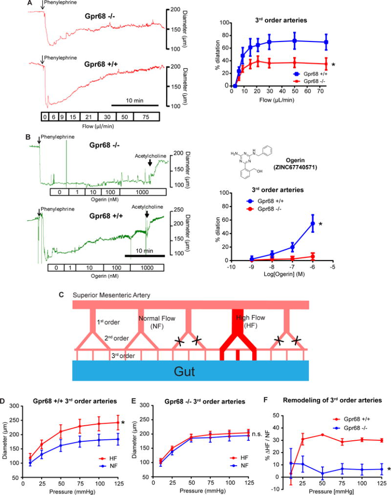 上述结果说明,Gpr68 基因是体外小鼠小直径肠系膜动脉的流动介导的扩张反应所必需的。