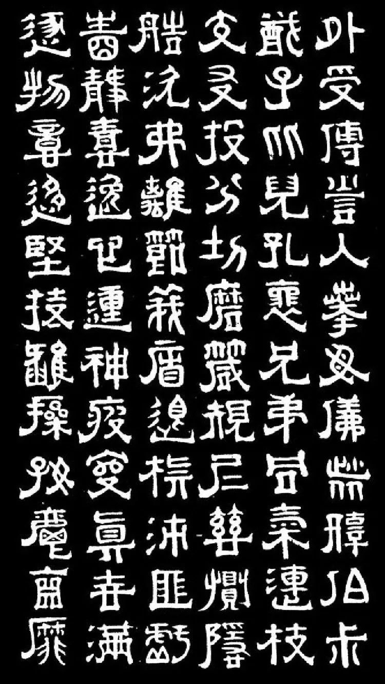 在隶书书法创作领域中,傅山是明末清初承前启后的重要人物,隶书在他手中柳暗花明,清代隶书的复兴也要重重地写上傅山的大名。是傅山隶书神完气足、一气呵成,用笔精到,字形端庄,线条纤劲圆润,字形优美秀润而不失古朴,其中有众多的古文奇字,基本摆脱了明人隶书习气,靠近汉碑风神。傅山隶书轴,用笔简明,恪守中锋,有金石韵味。结字多取篆书结构,增强了隶书的古气。章法参差错落,字形大小变化自然,有行书的韵味。傅山隶书中透出的文气,也为一般书隶者所不及,傅山的碑刻隶书比他的墨迹规整。