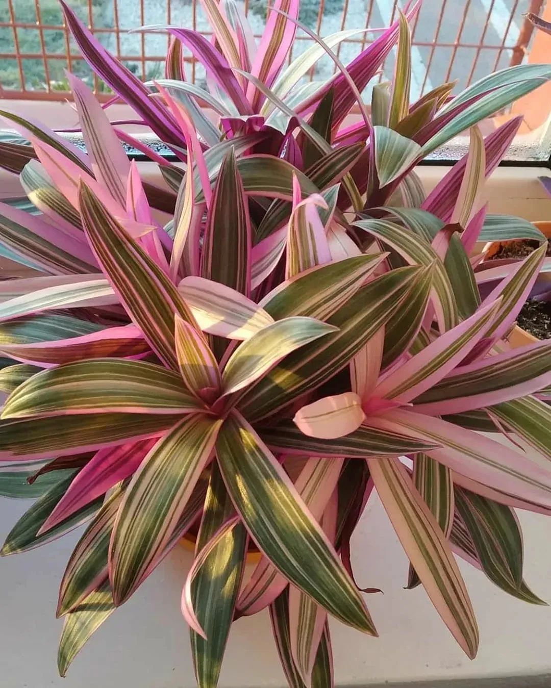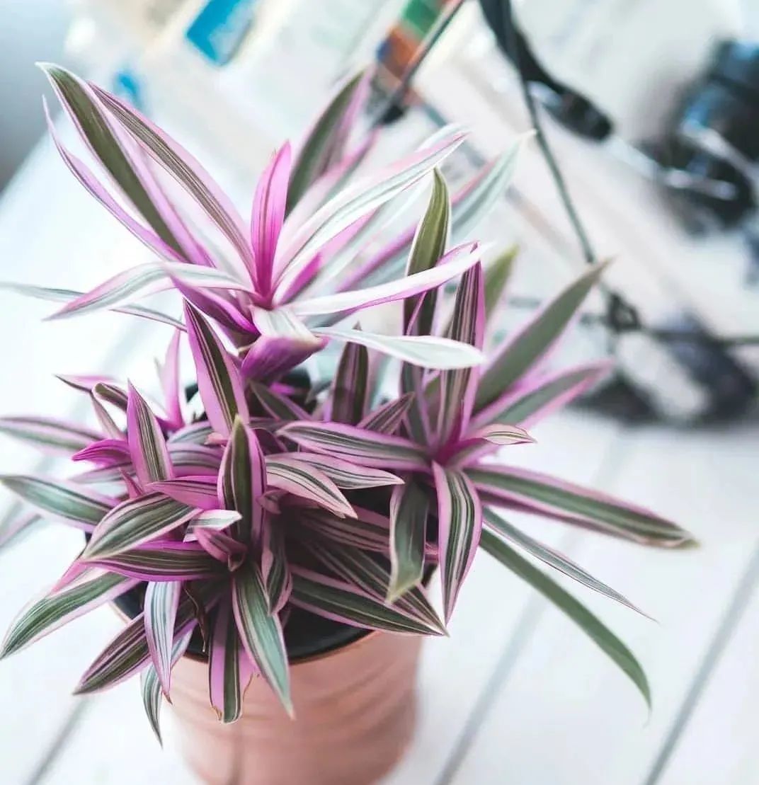 条纹小蚌花就是蚌兰(紫背万年青)的锦叶品种,这是比较稀有的一种室内植物,在网上都可以买到,花市里就比较少看到了,它也是一种低维护的室内植物,它比较喜欢柔和的散射光,不需要过度暴晒,当然也要避免过度遮阴,否则它的叶色会变得暗淡。