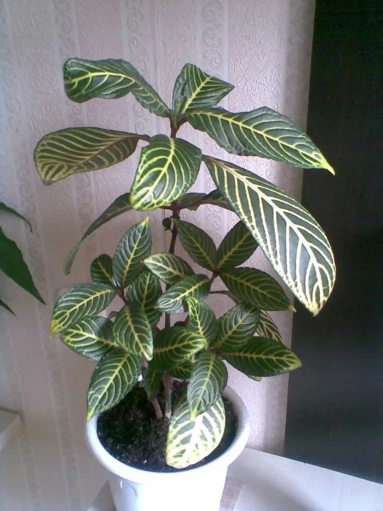 金脉爵床的植株是可以长得很高的,在花盆中就可以限制它的生长。它最大的特点就是银白色的叶子和引人注目的白色叶脉,它的叶脉是略微凹陷的。金脉爵床的生长速度比较缓慢,在室内栽种一般最高也就长到一米多。