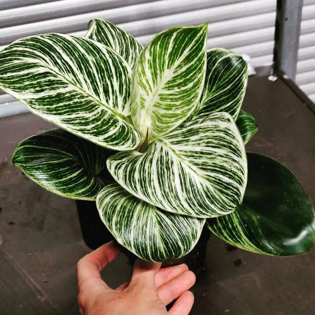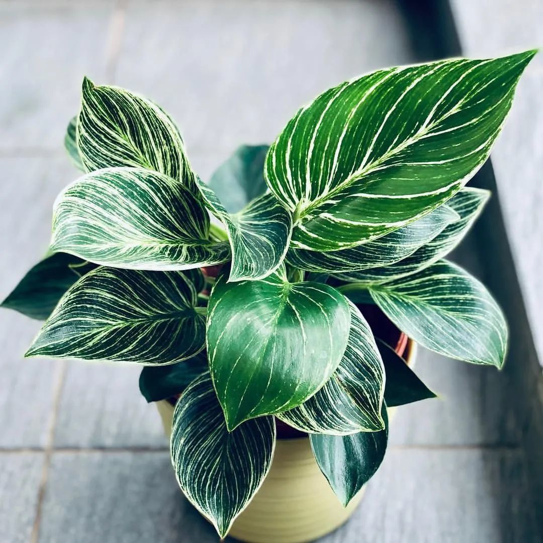 铂金蔓绿绒最大的特点就是绿色和奶油色相间的条纹,喜欢常年温热的环境,有较高的湿度才能生长良好。