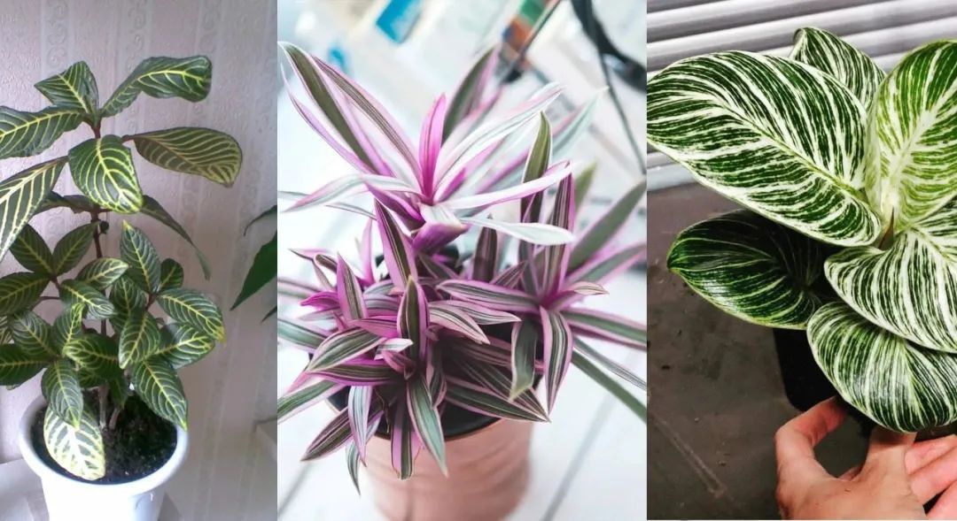 有一些盆栽植物叶片上带有迷人的条纹,这些带条纹的叶子看起来非常独特,叶片上的条纹一般是白色、红色、粉色或银白色,搭配室内家居观赏性就特别好。