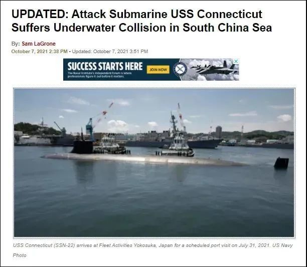 美国海军官员透露的信息也从侧面提供了证明——与“康涅狄格”号发生碰撞的“可能是一艘沉船或沉没的集装箱”。这说明当时这艘核潜艇距离海底非常近,才有可能被海底的沉船撞上。