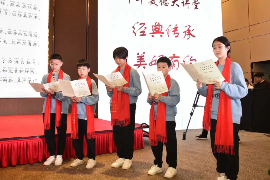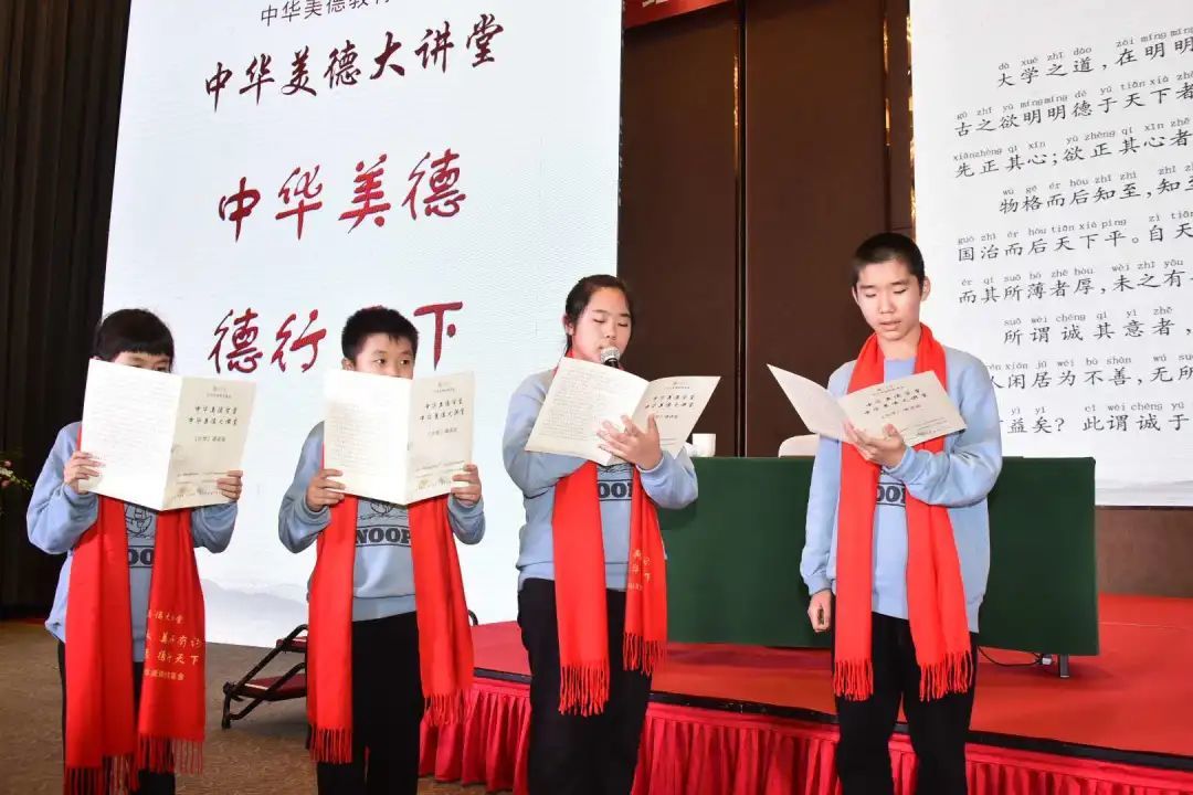 活动最后,天赋教育9位学子在台上和各位领导嘉宾共同诵读经典:《大学》。