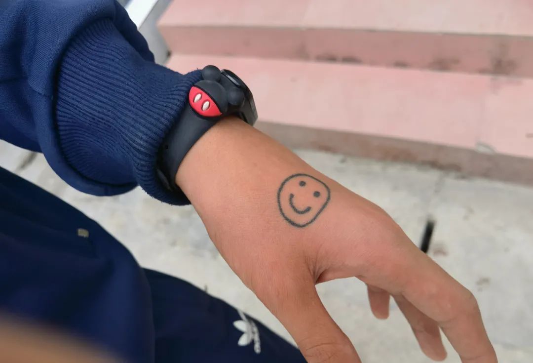 9月24日,一个14岁男孩向记者展示他手上的纹身,他说“在手上纹一个笑脸,提醒自己要快乐” 。新京报记者 李照 摄