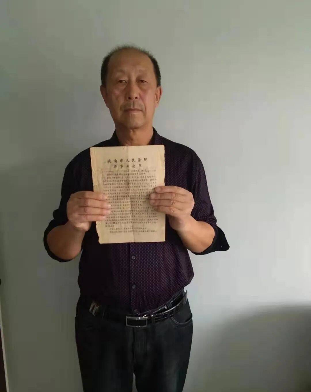 ▲徐宏伟手持已经泛黄的刑事判决书。受访者供图