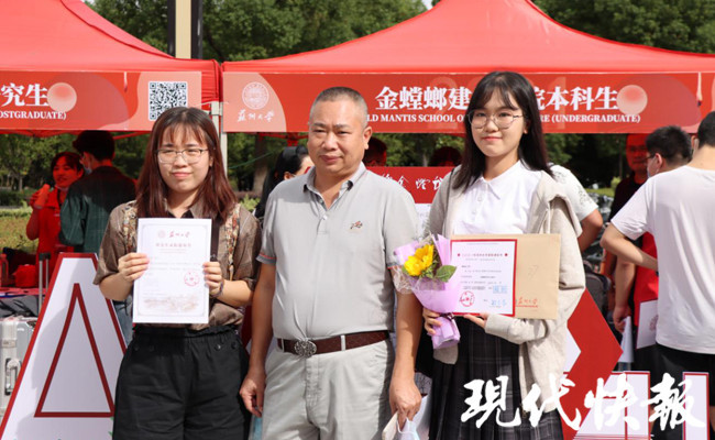 今年,考入苏大的“小苏”里有一对姐妹,姐姐曹妙霞考取了金螳螂建筑学院风景园林硕士研究生,妹妹曹妙盈被该学院本科建筑学专业录取。“我俩对园林建筑都十分钟爱,今年共同圆梦苏大真是缘分。”曹妙霞说,在同院学习的她们会继续互帮互助,携手畅游书海,为梦想努力。
