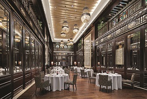 以广州独有的“西关大屋”为设计灵感的明阁餐厅大厅