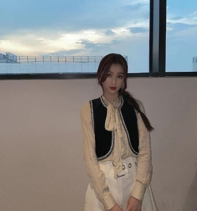 小香风的知性风衬衫搭配一款黑色的马甲,这种微微网纱的蕾丝面料搭配一款金色勾勒与镶嵌的小马甲,有一种贵妇的慵懒风,并且这种风格对于每个女生都很实用。中间的领带蝴蝶结设计也能够增添一丝丝的光彩,让整个人的冷艳程度倍增。这种看起来就很魅惑的款式也真的是让人移不开眼呢。下半身搭配的是纯白色喇叭裤,宽松浮夸的设计与上半身的简单风相补,整体看起来落落大方,知性温柔,透着一股青春灵气的既视感