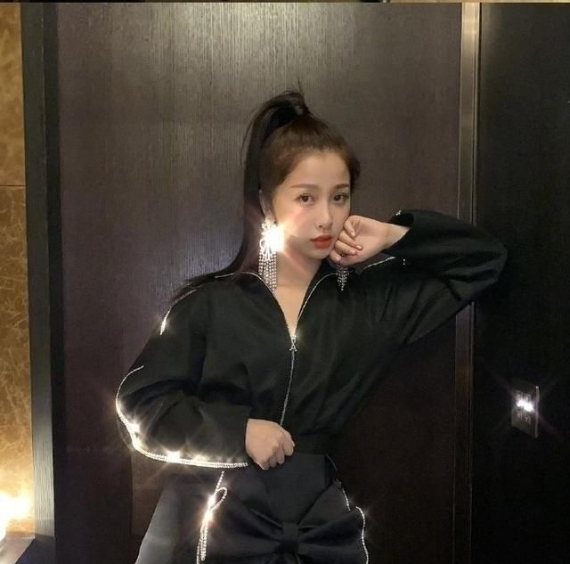 最后就是一款性感小野猫的穿搭了,大片的蝴蝶结作为一个装饰,包臀设计让整个身材凸显的更加火辣。银色的拉锁设计与黑色形成强烈的视觉对比,看起来精致高贵,冷艳动人。搭配一款长流苏款镶钻耳链,整体看起来高贵中透着魅惑,真的是十分惊艳呢。
