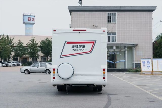 车尾部分设有备胎悬挂线、摄像头等设施,并支持选装进口菲亚玛自行车架、进口菲亚玛后爬梯等配置;多组行车灯有效提升夜间车身辨识度,对夜间行车安全也能起到一定保障;