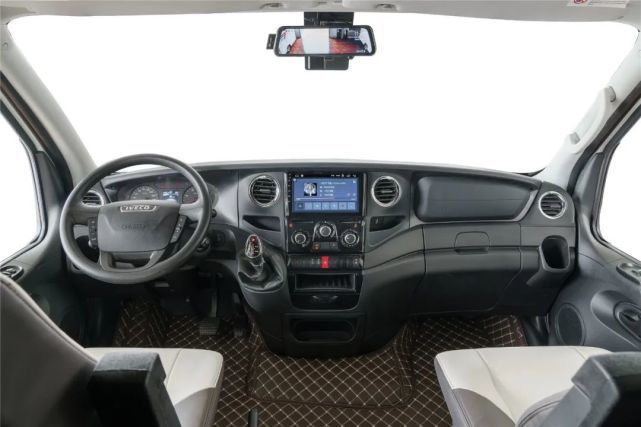 驾驶舱底部铺设脚垫,并配置了主副悬浮座椅,行车时的乘坐舒适度得到大幅提升,同时副驾驶座椅可180°旋转,便于驻车时与后方组成更大的会客区;行车方面则是配备了多功能方向盘、车机手机互联、ESP、倒车雷达、倒车影像、胎压监测、定速巡航、高清行车记录仪、电动加热加宽加长外后视镜、车机手机互联、遥控钥匙等辅助驾驶;