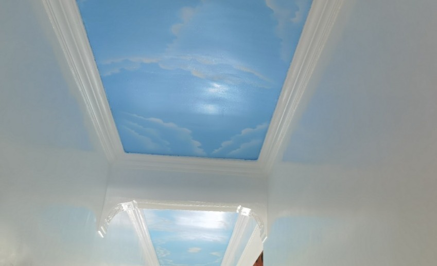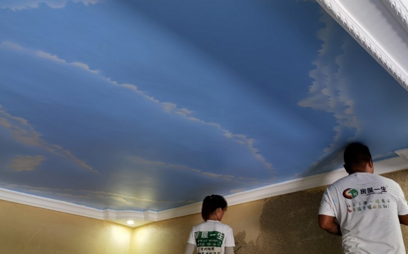 现在更多人使用的是涂料,使用进行天花板装修不仅有跟多的选择风格,而且涂料不会像石膏线一样开裂,而且花样和颜色还能有更多的选择。