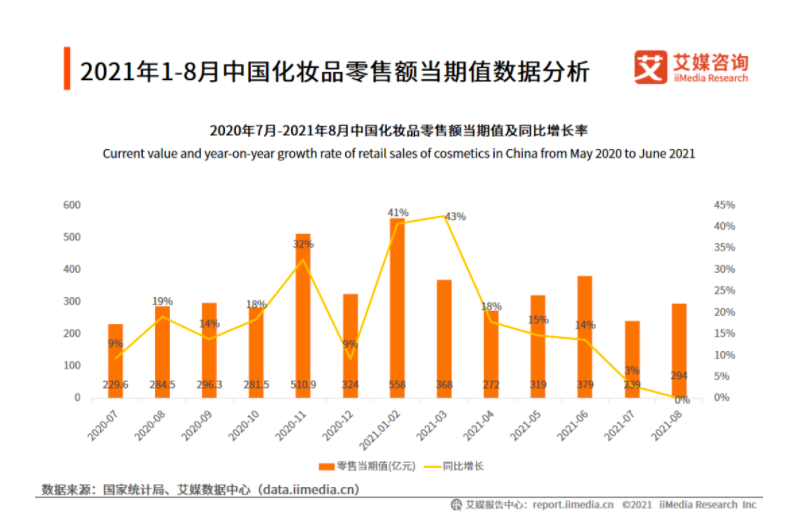 艾媒咨询获取的宏观数据显示,从今年三月开始,随着增长速度的不断下滑,八月化妆品消费总额整体进入停滞增长状态。