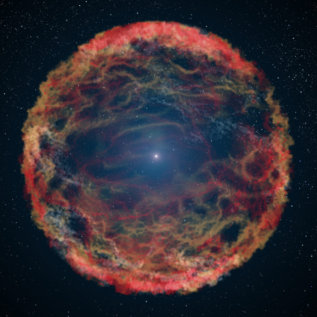 当恒星脱离外层时,它最终只留下白矮星这样的一个残余物。尽管还有其他类型的白矮星,但大部分白矮星主要是由碳和氧组成。