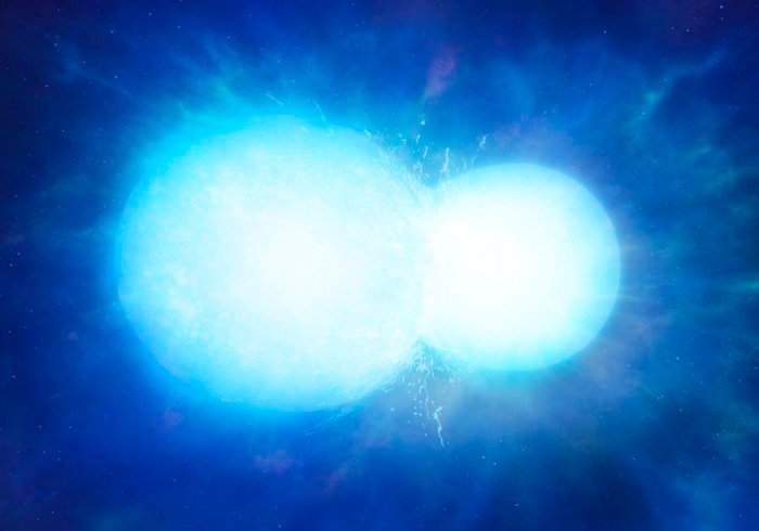 着需要数十亿年的演化,但是最终引力波的发射使轨道收缩得十分厉害。末日就在眼前,或者婚姻就在眼前,当轨道收缩到足够小得程度时,恒星就会合二为一。