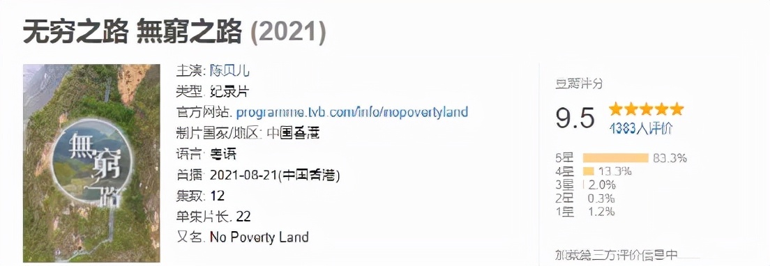 首播即拿下豆瓣9.5分,《无穷之路》通过主持人陈贝儿的亲历走访,向香港人民展示了中国政府长久以来、艰苦卓绝的扶贫工作,以及最终取得的辉煌成果。